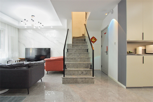 現代風格的復式雅居,包藏著生活的點點滴滴,采用灰色為主體色調,線條感較強。低調的色彩讓室內成熟而穩重。當我們卸下一身疲憊之時,享得半畝嫻靜,快樂便會立刻迸發。不管時代如何更迭,潮流怎樣變換,家的精神內核從不曾改變,它是我們身體與心靈的居所,而每一種細膩的官感就是當下生活最真切的寫照。