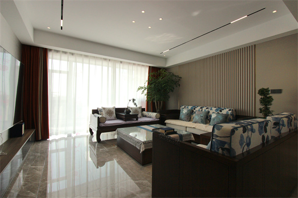 本案是一套190m²的四居室大平層,業主是一位事業型女強人,與父母居住在一起。因此在給新房裝修時,業主盡量考慮好室內家具擺放的位置以及地面防滑處理,讓動線更流暢,方便父母行走自如。業主父母對新中式風格比較情有獨鐘,但中式的儀式感太強,過于沉重,于是設計師結合業主的需求,很好的將中式元素與現代手法相融合,以流暢簡約的線條勾勒出完美的居室空間,將空間每一處細節都能散發出亦古亦今的層次之美。
