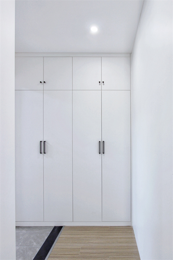 主臥內自帶衣帽間,純粹自然的白色衣柜頂底相接,墻體半掩也使臥室空間更加私密。