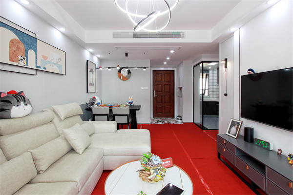 本案業主為新婚夫妻,這套房也是為了新婚而準備的,兩位業主都非常喜歡貓,家里無論是燈具還是桌面上,都有小貓玩偶的裝飾,裝點著他們的幸福。
