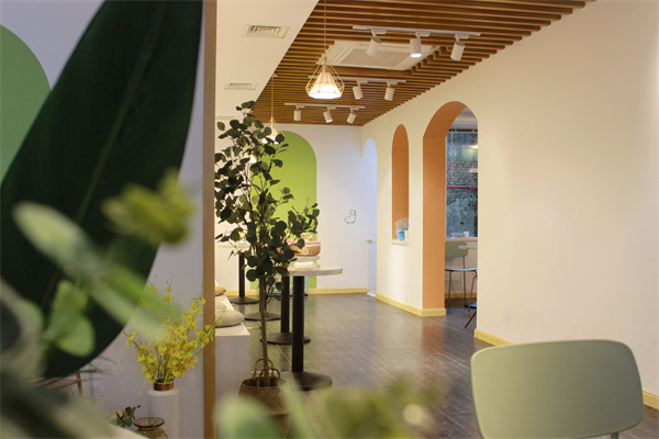 木飾面吊頂與白墻呼應(yīng),打造一種自然脫俗的氣息,整潔明亮的休閑區(qū),有時候獨(dú)坐著也是那么美好。拱形門洞創(chuàng)意十足,使內(nèi)部環(huán)境得以延伸,又與墻面色彩元素形成對比。