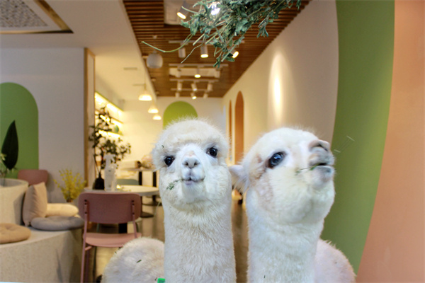 小動物總是單純美好的存在,一樓適合與羊駝兔子安靜拍照打卡,羊駝在線營業(yè),吃貨本性暴露無遺。