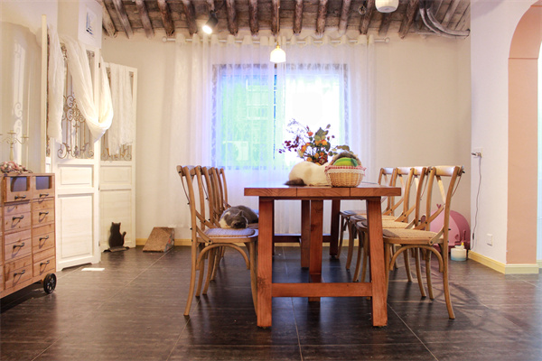 來到二樓便是貓咪的天堂,呆萌可愛,治愈十足。整體風(fēng)格帶有一絲做舊的古樸風(fēng),吊燈線條感十足,簡單的裝飾讓貓咪更加自在的活動。拱形元素充斥每一道墻面,角落的樹枝狀貓架供貓咪休息玩耍。