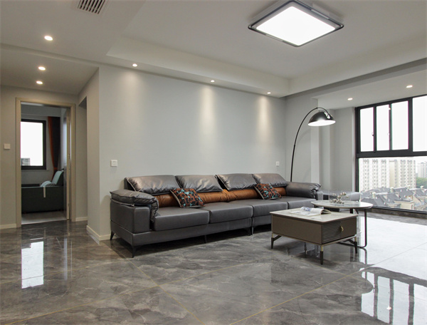 客廳運用“高級灰”色系奠定了空間的主調,給人以精致、寧靜的感覺,同時結合一些材質的表達,讓空間更顯簡潔大氣。