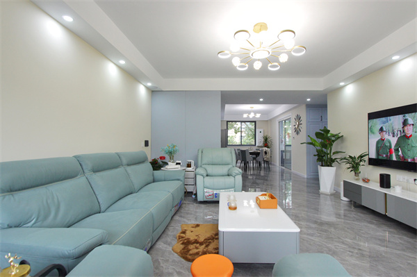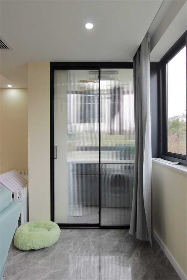 用長虹玻璃移門將生活陽臺與客廳進行區域劃分,既美觀又隱秘。
