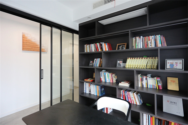 簡單的格局與配色,成就一個視覺輕松,辦公舒適的書房空間,三聯(lián)動的玻璃門,既能在辦公時不被打擾,又能在休閑時增加交流。