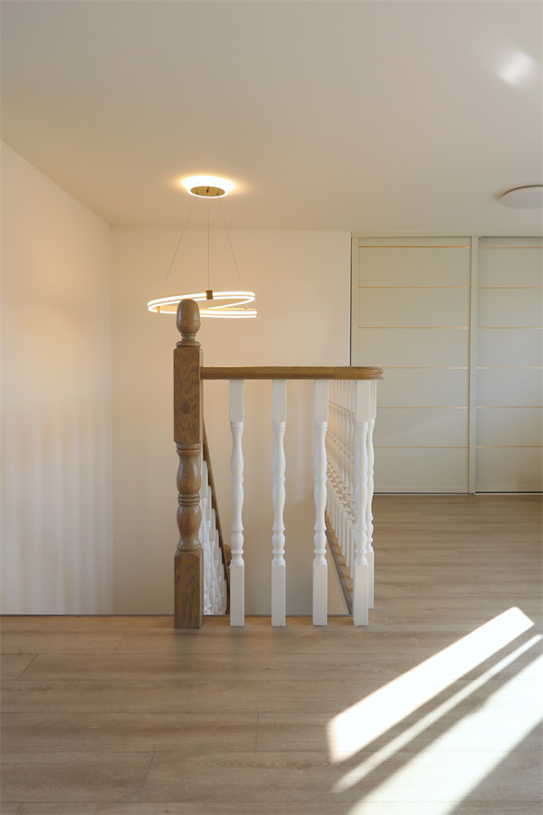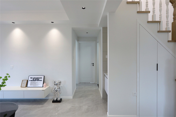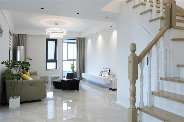 進入客廳空間,有樓梯做空間過渡的框架,形成半隔斷的視覺感受。