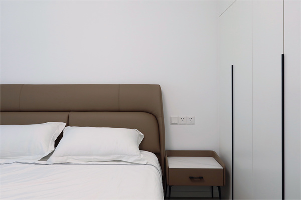 臥室使用柔和的燈光,床下設計燈帶,在溫馨暖色的映襯下,營造慵懶舒適的氛圍感。