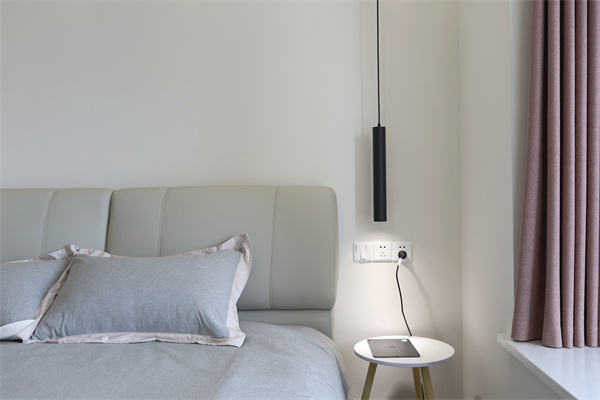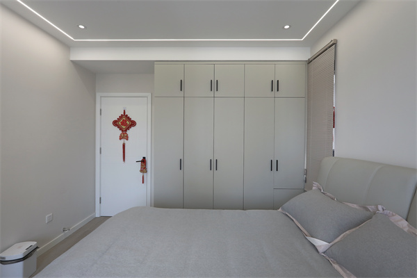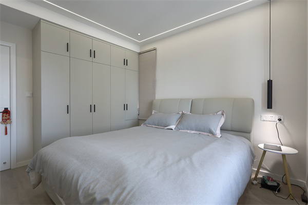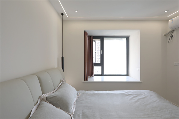 主臥采用無主燈設計,床頭一側的小窗口既能增加日常的采光通風,不使用的時候也能用窗簾遮擋。