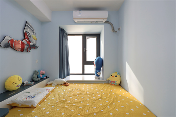 兒童房墻面采用藍色乳膠漆,打造夢幻童趣的男孩空間。