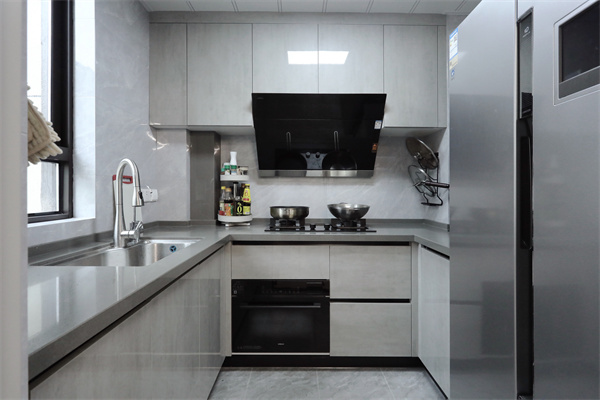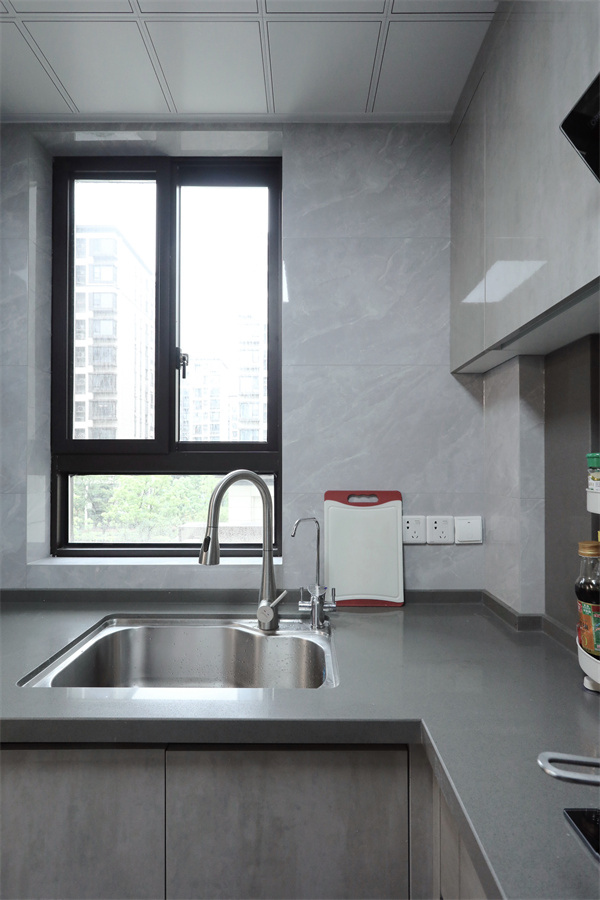 廚房面積不大,做U形既能保證日常的烹飪操作需求,也在保證通風的情況下,擁有足夠收納。