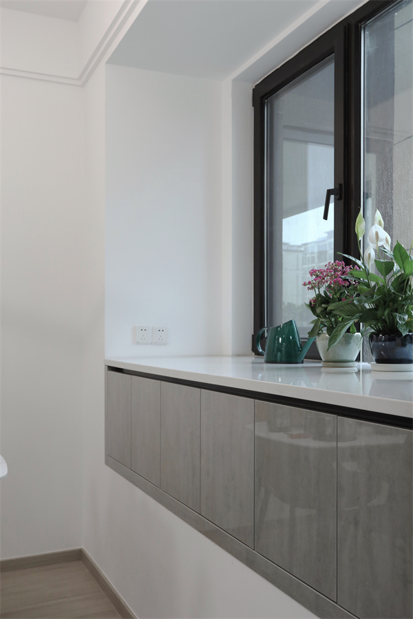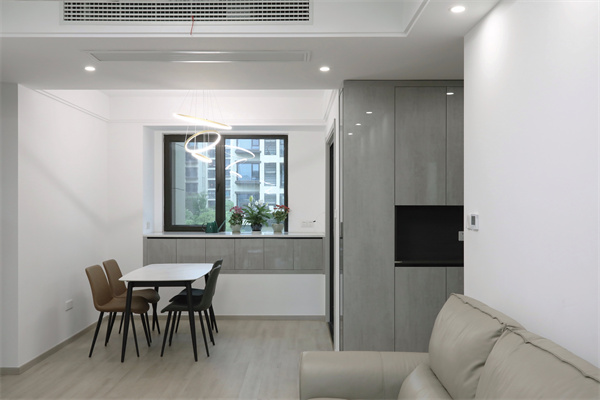 陽臺與客廳相連,拆除原有的移門設計,空間上顯得更加統一。