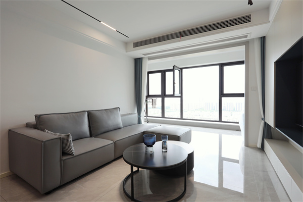 電視墻柜排列有序的線條,鋪就的是精致的生活氛圍。