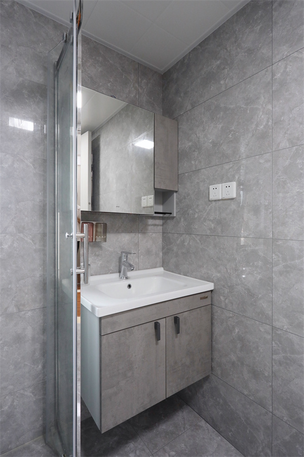 外衛的水槽鏡柜與內衛同款,墻地磚采用的暖色磚,營造舒適環境。