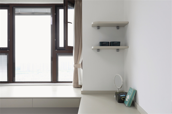 轉角空白處增加兩塊擱板,以簡約不失功能的手法創造舒適空間。