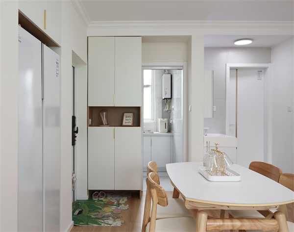 餐廳空間的邊界比較模糊,位于入戶一側(cè)的冰箱前,合理利用了小戶型空間。