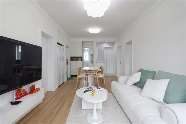 地面通鋪木地板,陽臺也被納入室內(nèi)空間,增加視覺面積。