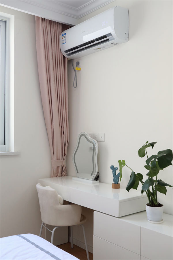 床尾放置梳妝臺,增加日常儲物的同時,也能滿足屋主的愛美之心。