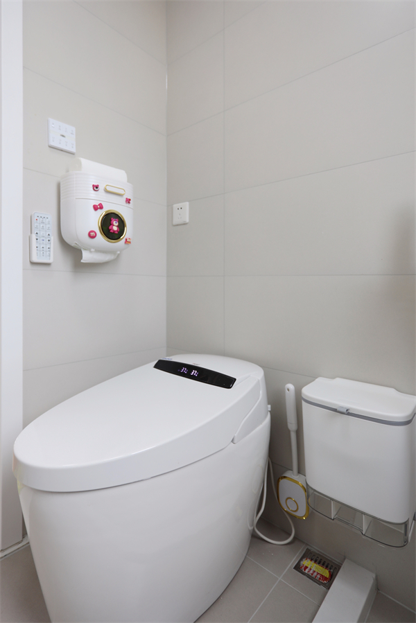 馬桶選用智能馬桶,隱藏式水箱更能節(jié)約衛(wèi)生間空間。